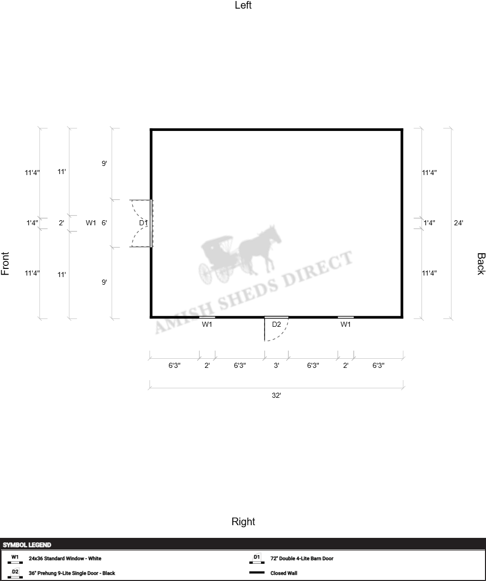 | Windows | 24×36 Standard Window – White with Shutters x3 |