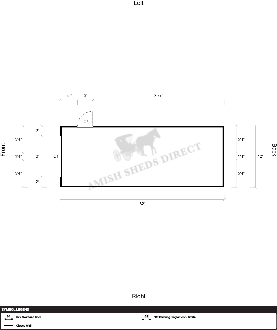 | Doors | 8×7 Overhead Door, 36" Prehung Single Door – White, Hinges Right |