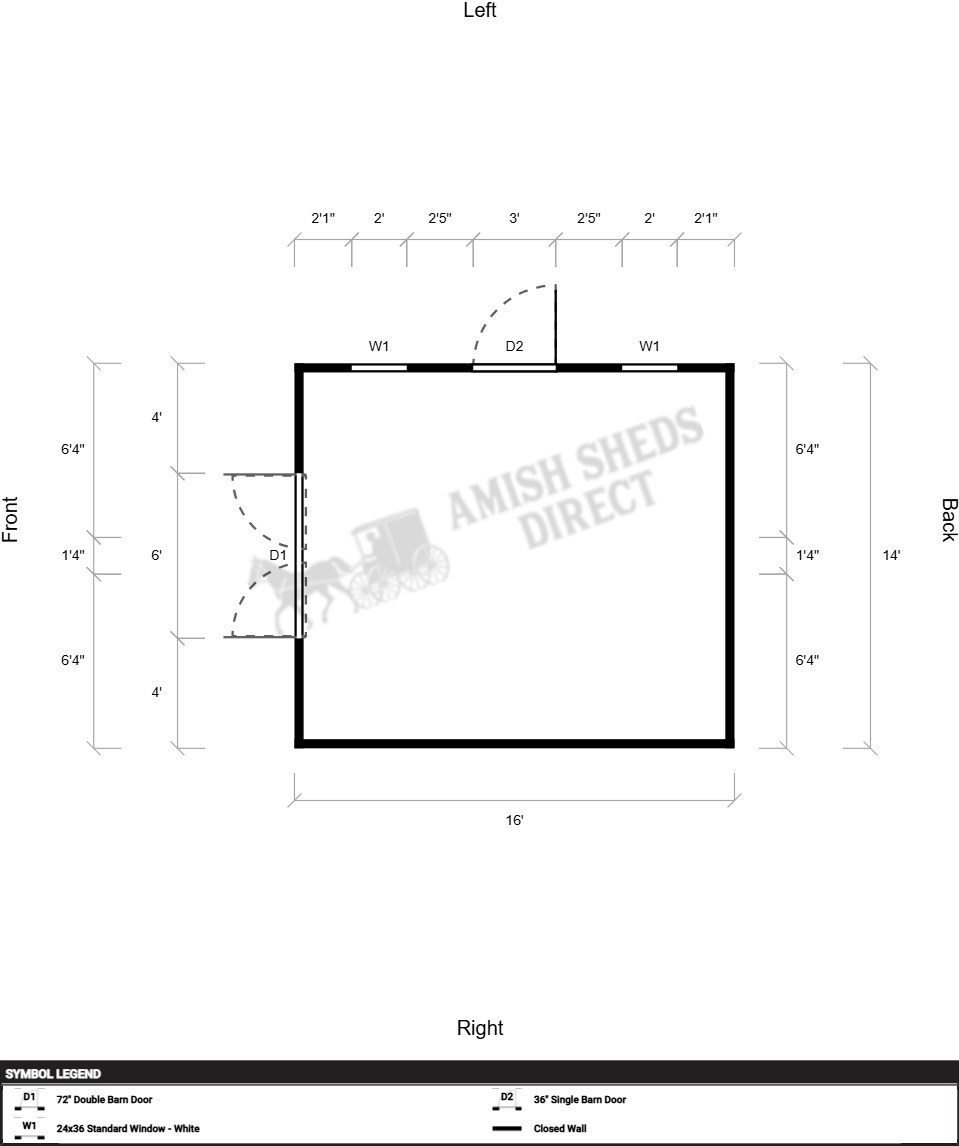 | Doors | 72" Double Barn Door, 36" Single Barn Door, Hinges Right |