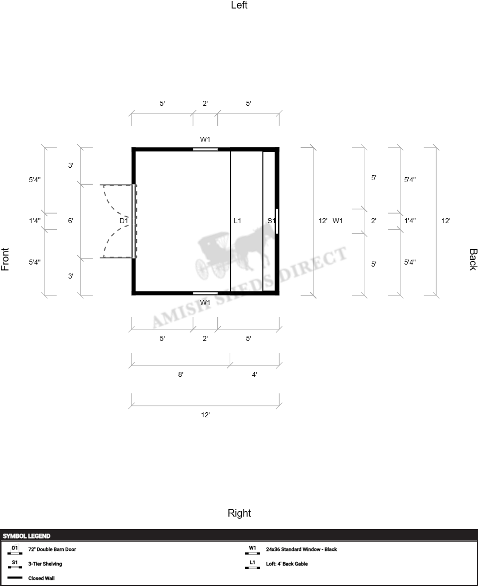 | Additional | Breaker Box (100 Amp), Receptacle x3, Light Switch, Radiant Barrier, Leveling Kit 12' Wide (Up to 8" leveling), 3-Tier Shelving (12 linear feet) |