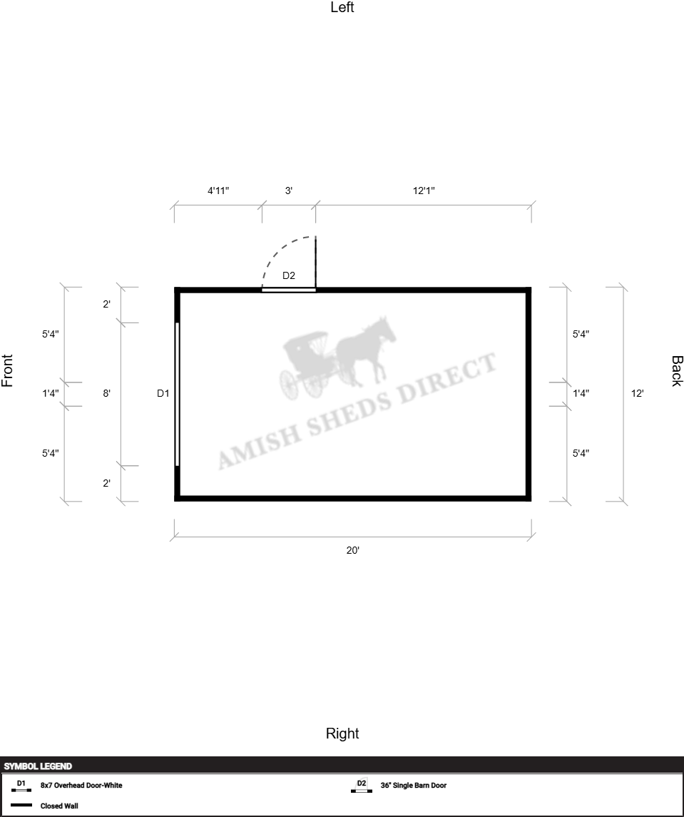 | Doors | 8×7 Overhead Door-White, 36" Single Barn Door, Hinges Right |