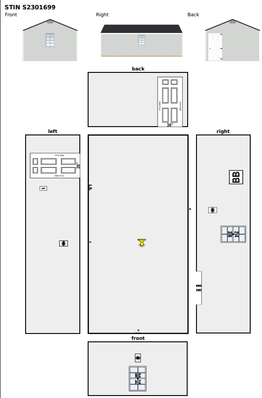 | Doors | 36" Single Fiberglass Door – White, Hinges Right x2 |