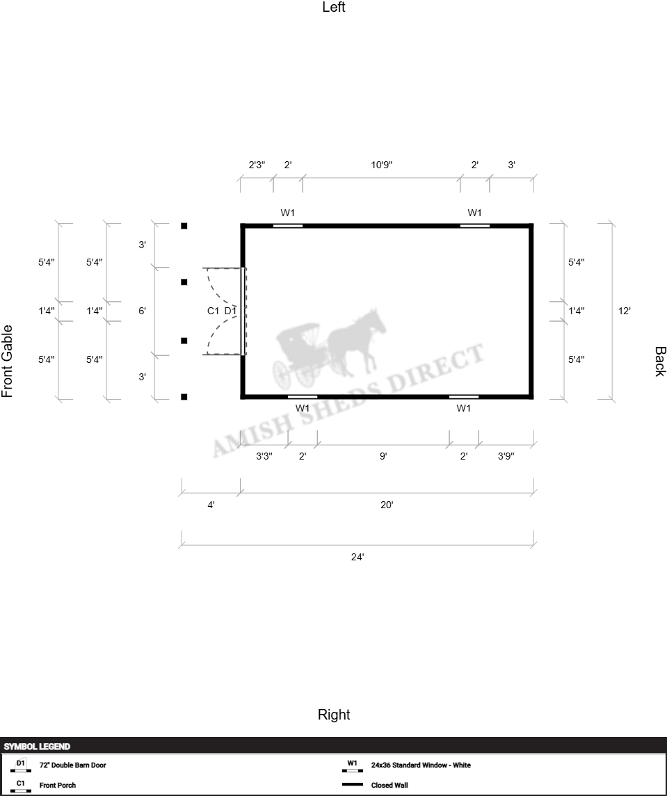 | Additional | Barn Door Color Matches Siding (Standard), Breaker Box (100 Amp), Interior Light, Light Switch, GFCI Receptacle x4 |