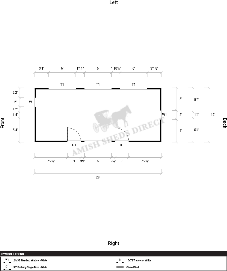 | Windows | 24×36 Standard Window – White x2, 10×72 Transom – White x4 |