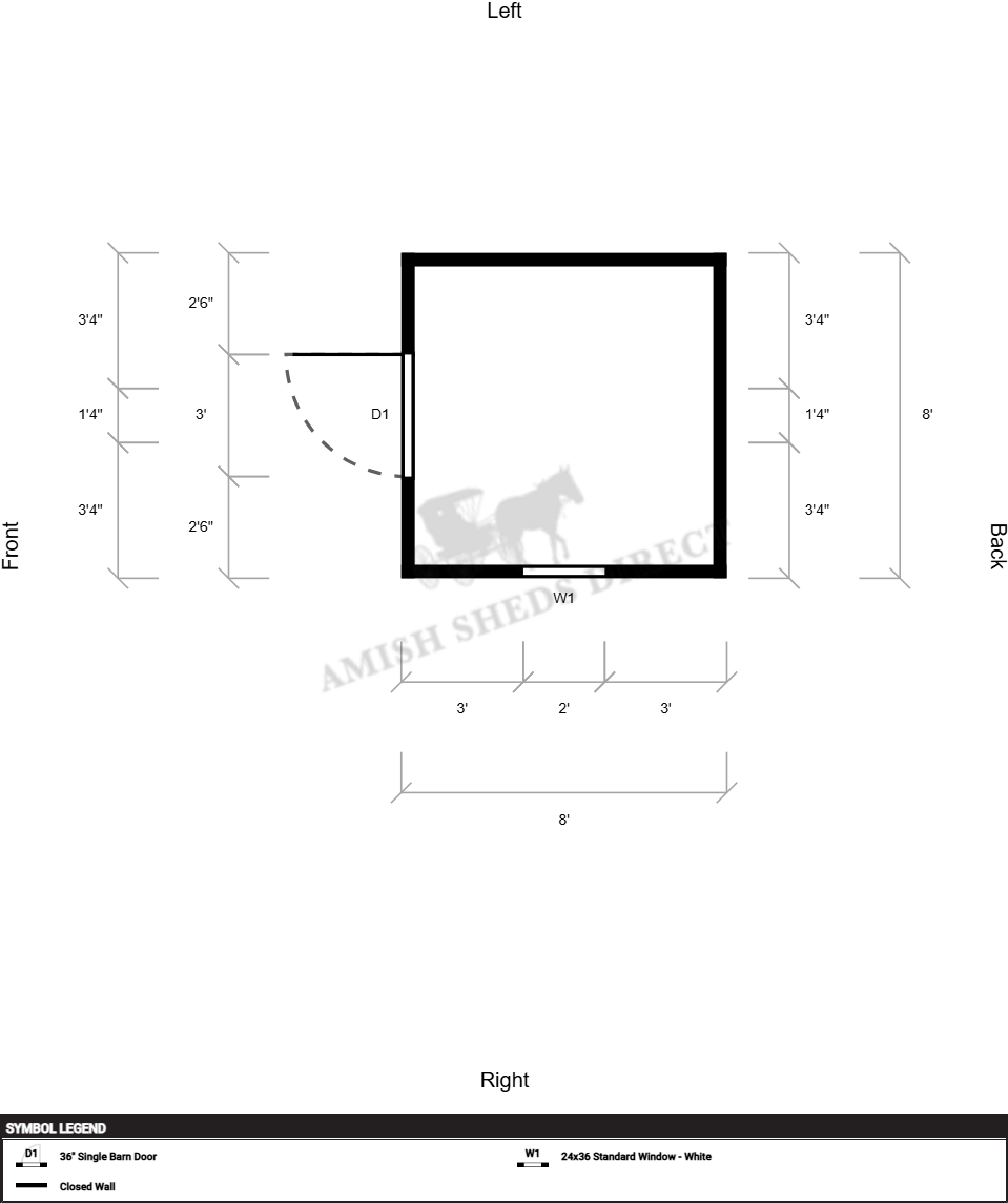 | Doors | 36" Single Barn Door, Hinges Right |
