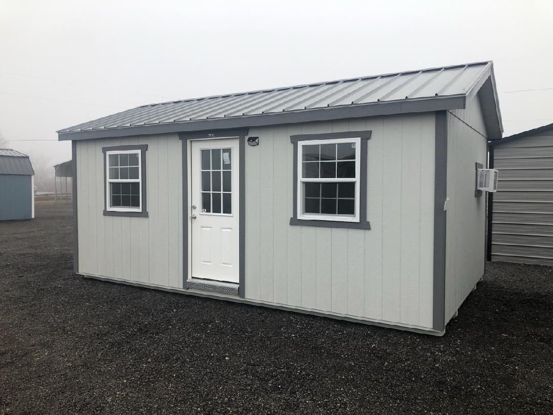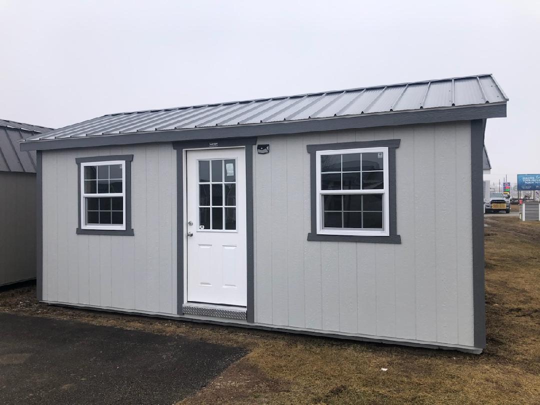 M-Charcoal Gray Charcoal 9 Light 36 prehung, 2 30 x 36 wht win, Electrical, AC, BB, Black Raised Shutters, 50 yr fl, paneled wall and ceiling, interior light, light switch, Taller Wall, Overhang