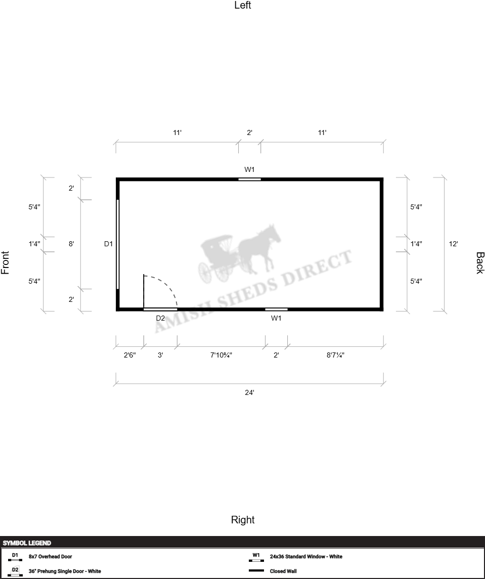 8×7 Overhead Door, 36" Prehung Single Door – White, Hinges Right