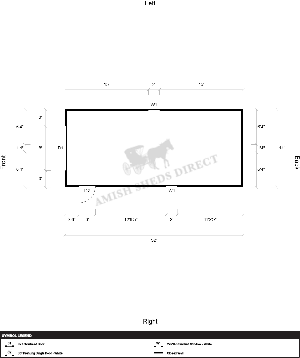 8×7 Overhead Door, 36" Prehung Single Door – White, Hinges Right