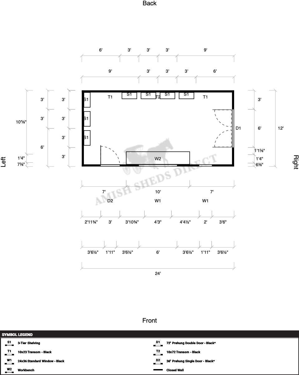 | Doors | 72" Prehung Double Door – Black*, 36" Prehung Single Door – Black*, Hinges Right |