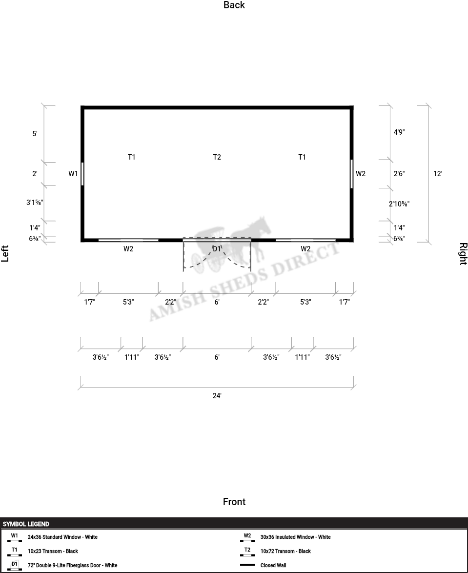 30×36 Insulated Window – White x5, 10×72 Transom – Black, 10×23 Transom – Black x2, 24×36 Standard Window – White