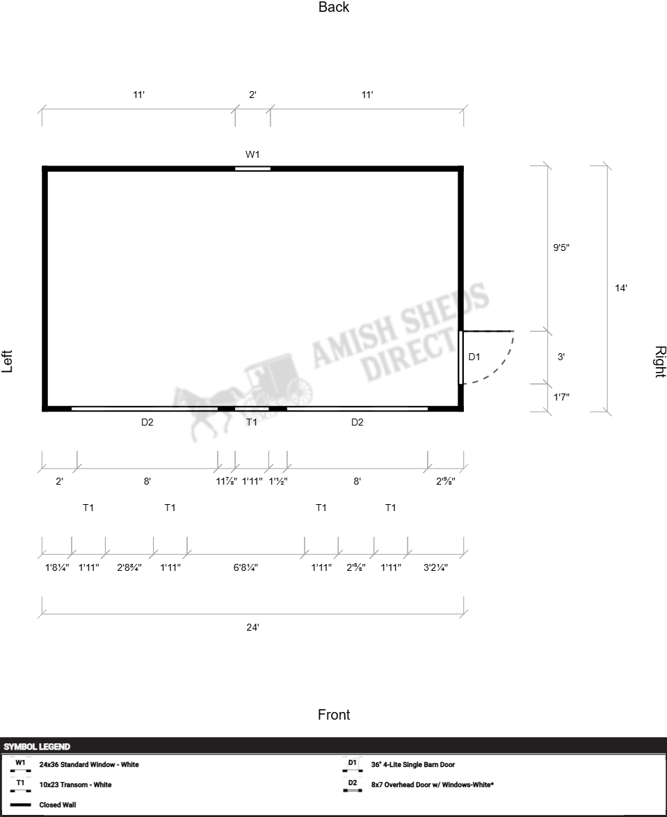 36" 4-Lite Single Barn Door, Hinges Left, 8×7 Overhead Door w/ Windows-White* x2
